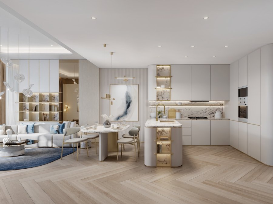 The development offers one, two, and three-bedroom residences, all thoughtfully designed with spacious layouts, high-quality finishes, and smart home technology to elevate comfort and convenience. Floor-to-ceiling windows maximize natural light, creating a bright and airy ambiance that complements the breathtaking views.